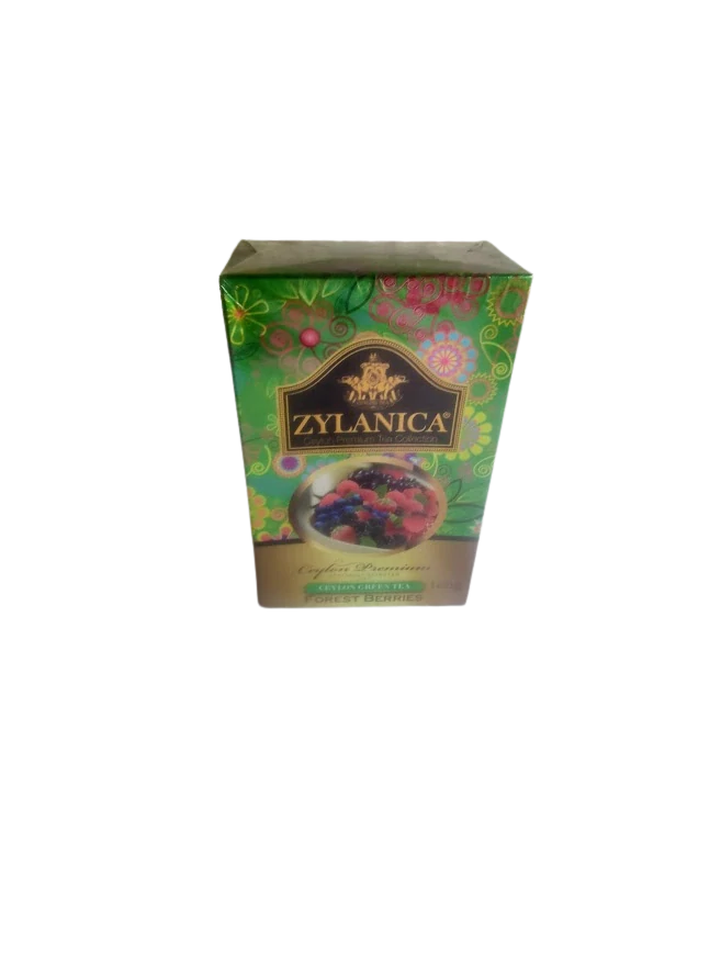 Sypaný zelený čaj míchaný s lesními plody. Baleno na Srí Lance. Ceylon Premium. Hmotnost obsahu je 100g.