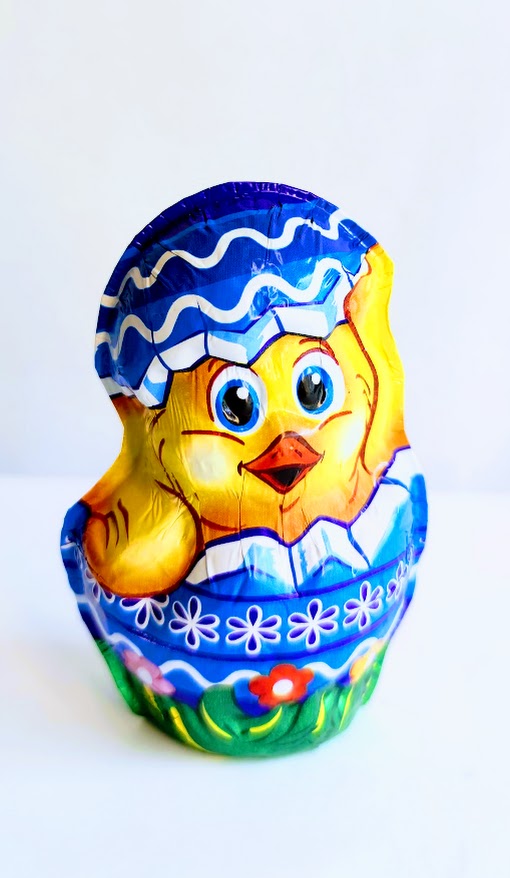 Velikonoční figurka kuřátko z mléčné čokolády. Dutá figurka, nejméně 35% čokolády. Hmotnost 50g. Baleno v alufólii.