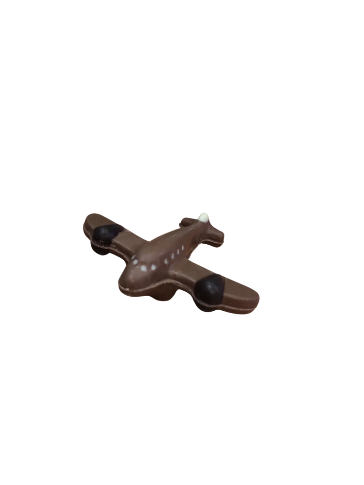Čokoládové letadlo, figurka z mléčné čokolády s jedlým barevným dekorem. Obsah kakaové sušiny v čokoládě je min. 32%.