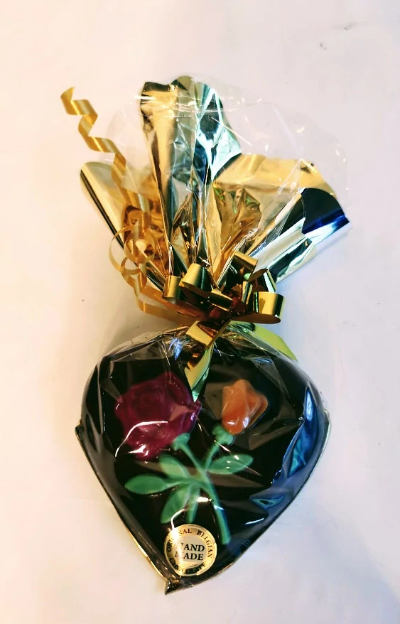 Srdíčko čololádové s růžičkami. Vše jedlé. Obsah kakaové sušiny min. 32%.